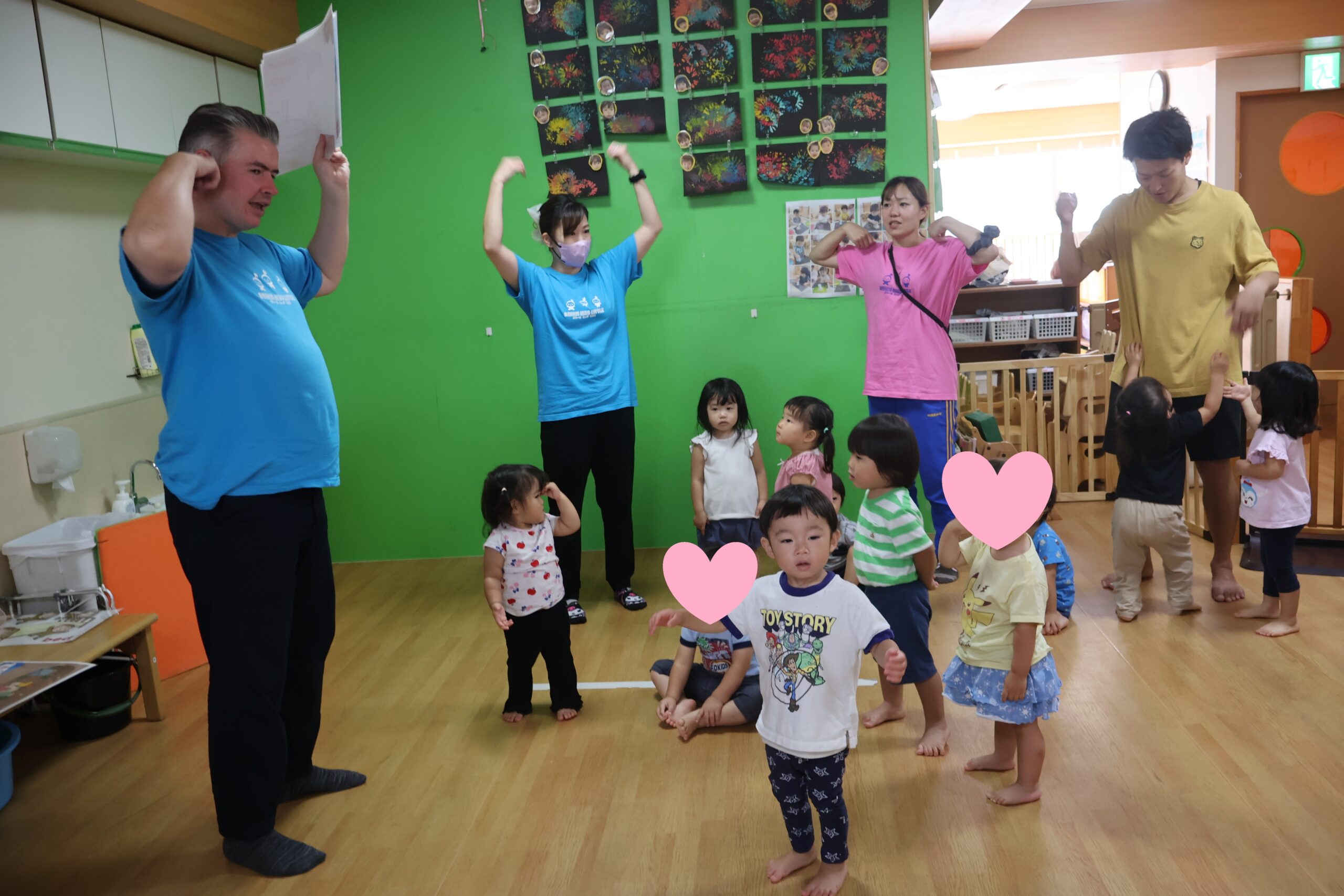 こちらは1歳児クラスが英語リトミックを楽しんでいる様子です。