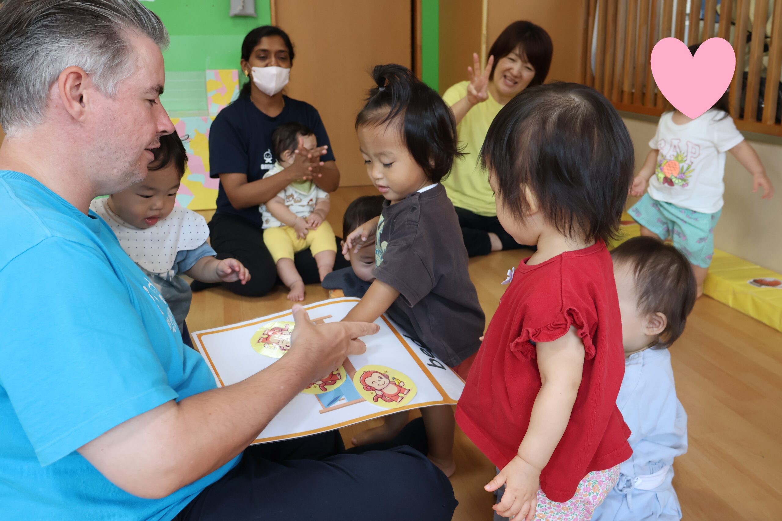 こちらは0歳児クラスが英語レッスンを楽しんでいる様子です。